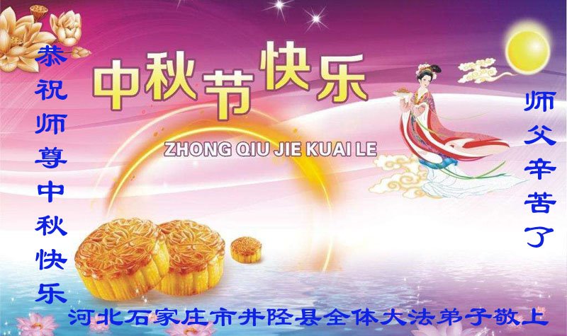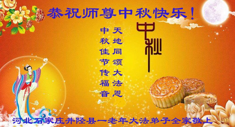 中秋节又到了,石家庄井陉县全体大法弟子恭祝慈悲伟大的师尊中秋快乐!师父辛苦了! 河北石家庄市井陉县一老年大法弟子全家恭祝师尊中秋快乐!