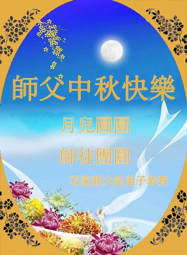 师尊好,恭祝师尊中秋节快乐! 石家庄卓达书香园大法弟子及全家敬上 河北省石家庄市正定县大法弟子恭祝师尊中秋节快乐!