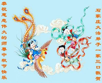 河北石家庄大法弟子一家三口恭祝慈悲伟大的师尊中秋节快乐!