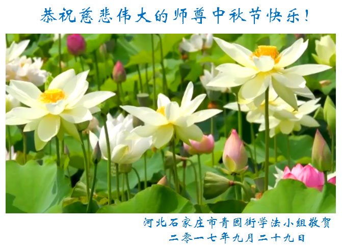 【明慧网二零一七年十月一日】 河北省石家庄市桥西区一学法小组大法弟子恭祝师尊中秋节快乐!