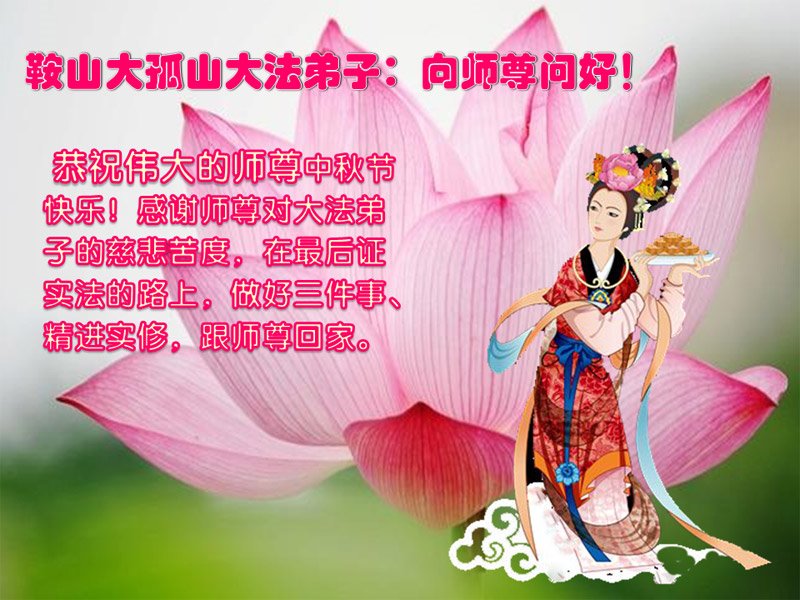 弟子感恩师父!在最后有限的时间里,弟子一定要多学法,多救众生。弟子想念您! 辽宁省鞍山大法弟子恭祝师父中秋节快乐!