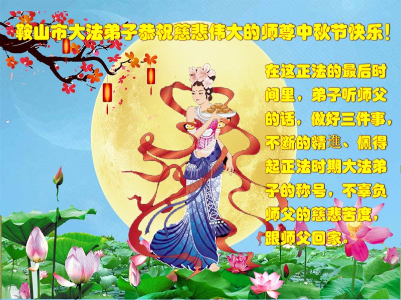 辽宁省鞍山大法弟子恭祝慈悲伟大的师尊中秋节快乐!