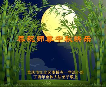 在以后不多的日子里我们一定好好学法,发好正念,修好自己,做好三件事。一定要跟师父回家! 重庆江北区大法弟子恭祝师尊中秋快乐!