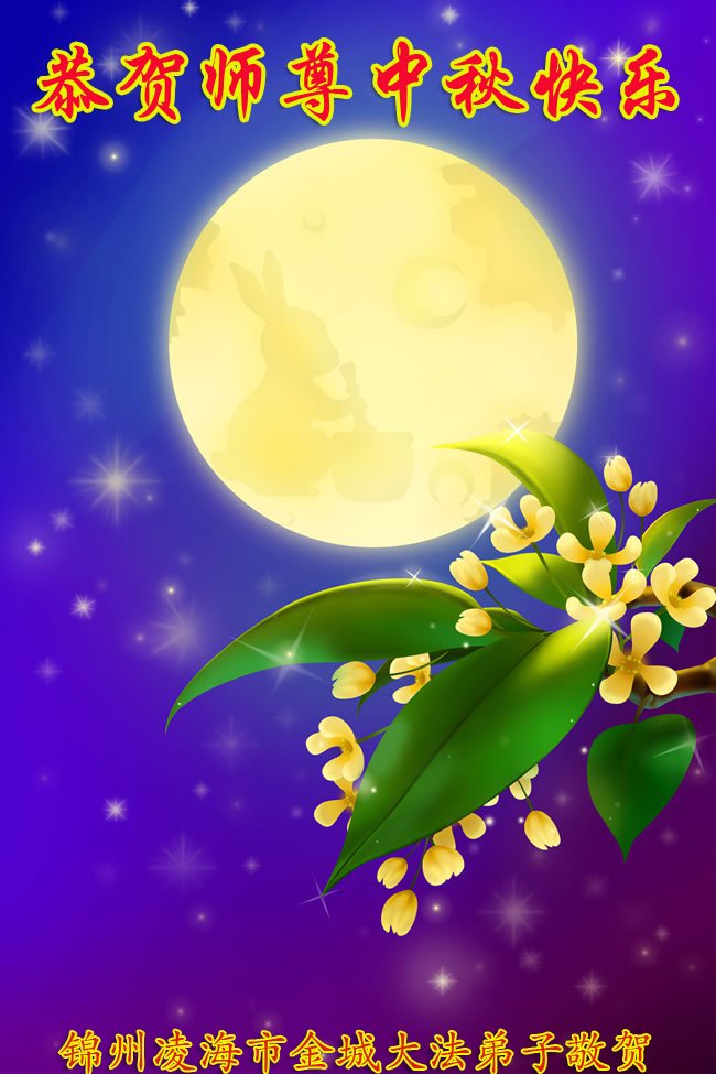 锦州凌海市金城大法弟子恭祝慈悲伟大的师尊中秋佳节快乐! 辽宁锦州凌海全体大法弟子恭祝师尊中秋快乐!