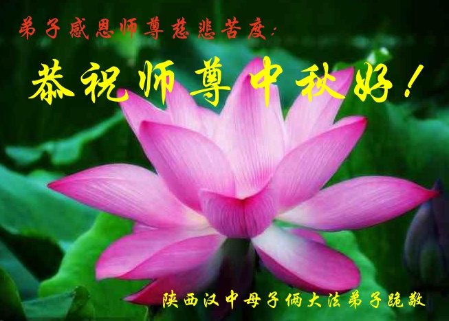 陕西省汉中市大法弟子母子恭祝慈悲伟大的师尊中秋节快乐!叩拜师尊救度之恩!