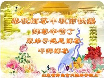 谢谢师尊的慈悲苦度!弟子们要谨记自己的责任,助师正法,救度众生,不负师恩。弟子叩拜师尊! 山东省青岛市胶州市全体大法弟子恭祝师尊中秋快乐!