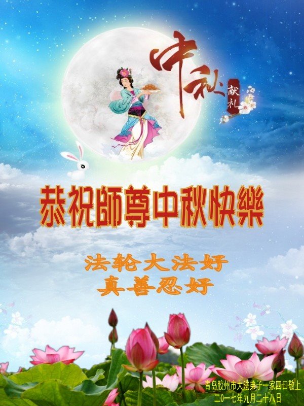【明慧网二零一七年十月一日】 山东省青岛市莱西市大法弟子恭祝师尊中秋节快乐!