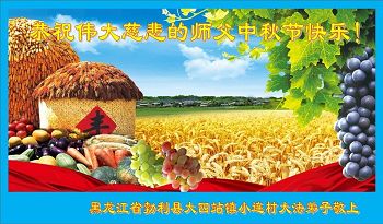 黑龙江省勃利县大四站镇小连村大法弟子敬上 黑龙江省七台河市勃利县大四站镇古城村大法弟子恭祝伟大慈悲的师父中秋节快乐!