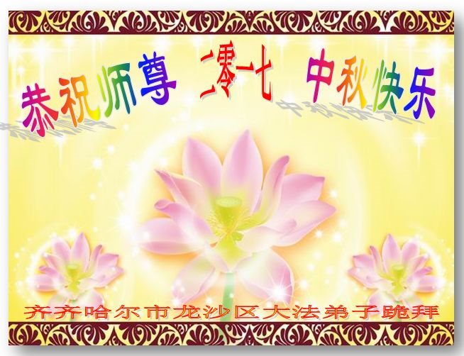 黑龙江省齐齐哈尔市大法学员祝师父中秋节快乐!