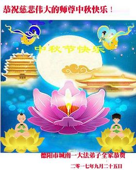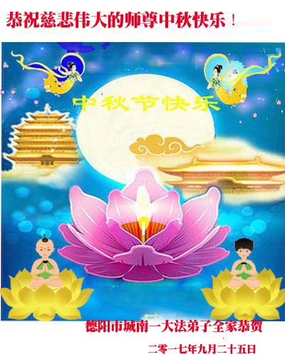 四川省德阳市城南一大法弟子全家恭祝慈悲伟大的师尊中秋节快乐!