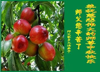 济世普度师辛劳 法徒助师心一条 实修做好三件事 弟子惟愿师尊笑 辽宁丹东东港一大法弟子恭祝伟大师尊中秋佳节快乐!