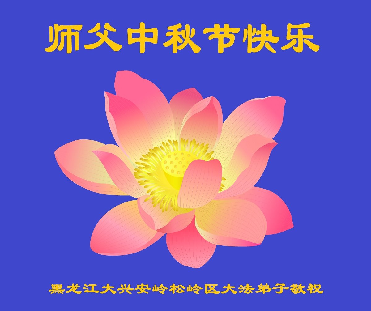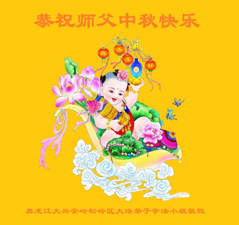 师尊您好!我们想念您!感谢师尊慈悲苦度!在师尊延长来的时间里,我们一定要学好法,踏踏实实的修好自己,完成好救众生的重大使命!请师尊放心。 黑龙江大兴安岭松岭区学法小组大法弟子恭祝师父中秋快乐!
