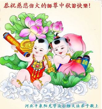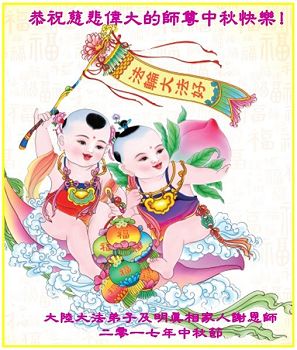 感激师尊慈悲救度,弟子一定能够努力做好三件事。 大陆大法弟子及明真相家人恭祝慈悲伟大的师尊中秋快乐!