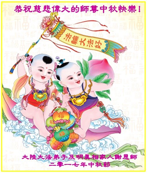 【明慧网二零一七年十月一日】 师父家乡一大法弟子全家恭祝慈悲伟大的师尊中秋快乐!