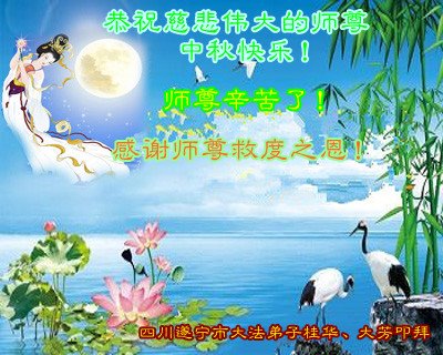 四川遂宁市两名大法弟子恭祝慈悲伟大的师尊中秋节快乐!