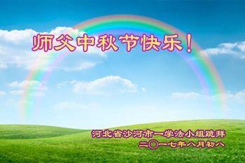 迄今我已得法修炼二十年了。弟子无限感恩师尊的慈悲苦度,弟子决心在今后有限的时间里,多学法,多去人心,多救人,做好大法弟子的三件事。请师父放心! 河北省邢台市沙河市一学法小组恭祝师父中秋节快乐!