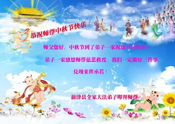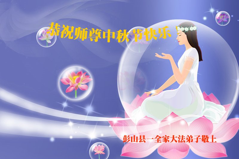师父您好!师父您辛苦了!我们小组大法弟子一定听师父的话,不受任何外界压力、形势的影响,只做师父教我们做好的三件事,不辜负师父的救度。 四川省眉山市彭山县一全家大法弟子恭祝师尊中秋节快乐!