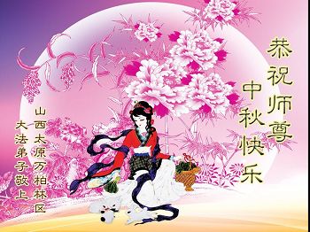 一年一度的中秋佳节来临了,在这家家户户团聚的节日里,非常想念恩师,盼师早日回故土师徒团聚。 祝师父中秋快乐! 山西省忻州市大法弟子李花 山西省大同市大法弟子暨全家恭祝师尊中秋快乐!