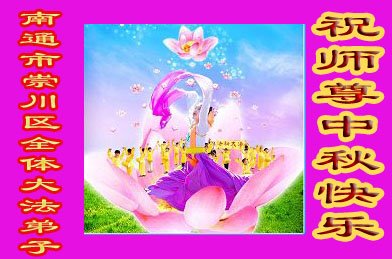 慈悲的师父:中秋快乐! 我们一定走好您安排的修炼之路,做好“三件事”,完成助师正法的洪愿! 全体南通大法弟子敬贺 丁酉年中秋 江苏南通市崇川区全体大法弟子恭祝师尊中秋节快乐!
