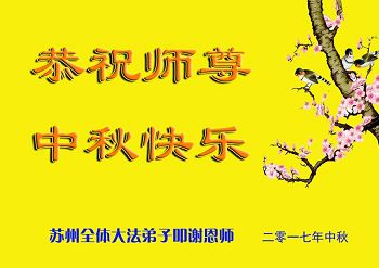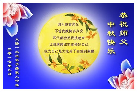 江苏淮安全体大法弟子跪拜 2017.9.28。 江苏南京地区一学法小组大法弟子恭祝慈悲伟大的师尊中秋快乐!
