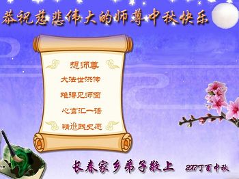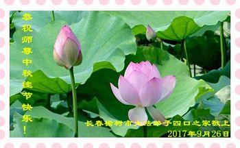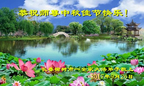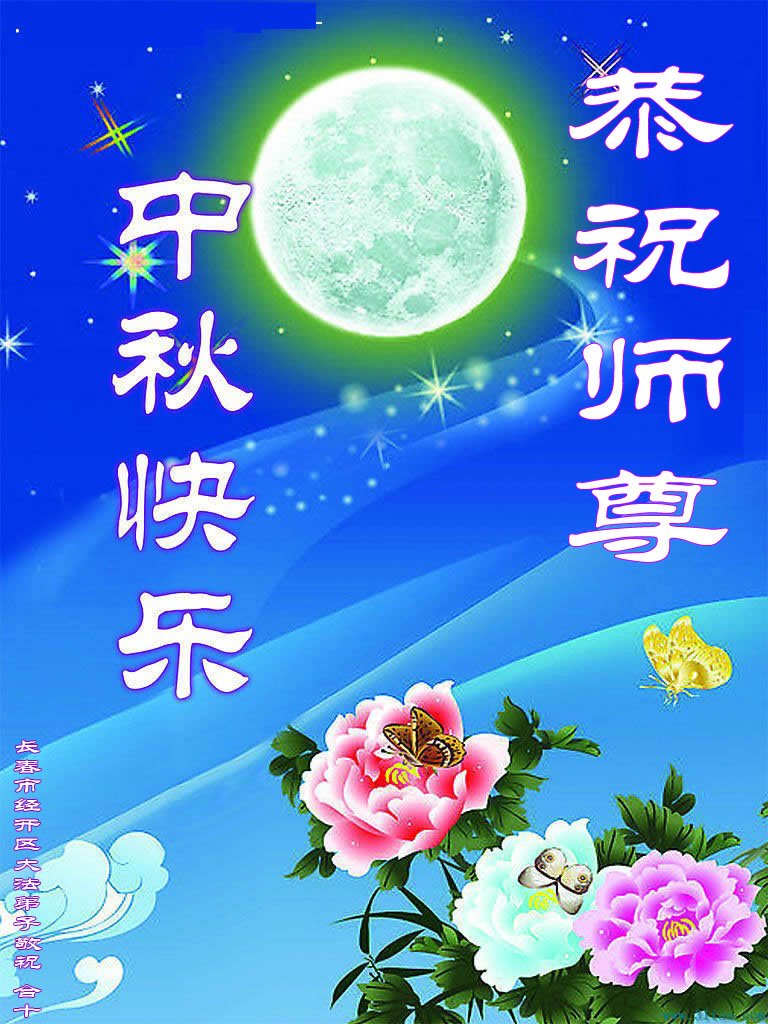 师尊您好!我们想念您!感谢师尊慈悲苦度!在师尊延长来的时间里,我们一定要学好法,踏踏实实的修好自己,完成好救众生的重大使命!请师尊放心。 吉林省长春临河街大法弟子敬祝师尊中秋节快乐!