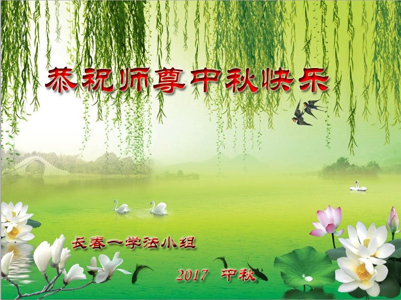 师尊您好!我们想念您!感谢师尊慈悲苦度!在师尊延长来的时间里,我们一定要学好法,踏踏实实的修好自己,完成好救众生的重大使命!请师尊放心。 吉林省长春胜利公园大法弟子恭祝师尊中秋节快乐!