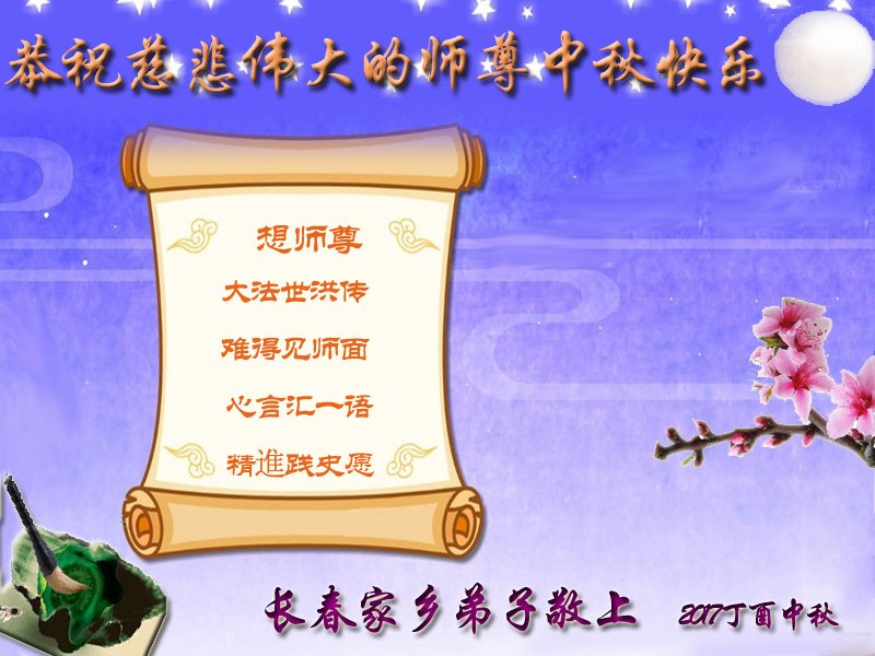 师尊您辛苦了,家乡的弟子们想念您啊。我们会一如既往的做好三件事,多救人,修好自己,随师回家园。 吉林省长春大法弟子恭祝师尊中秋快乐!