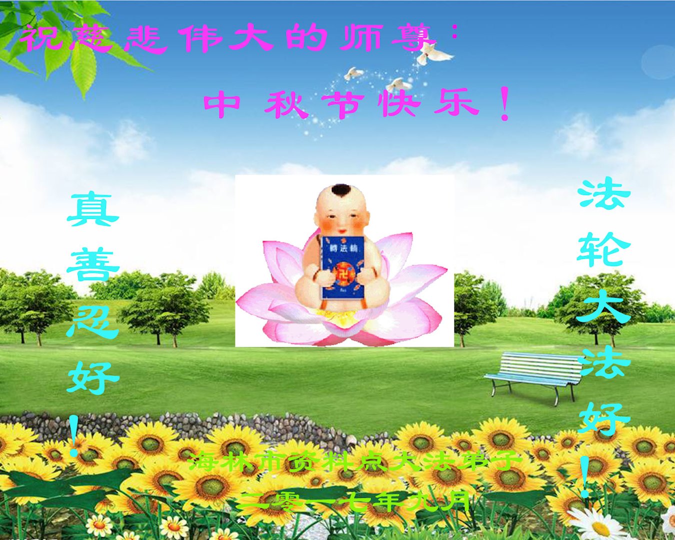 黑龙江省鹤岗市全体大法弟子恭祝师尊2017年中秋快乐! 黑龙江省七台河市勃利县六位大法弟子恭祝师尊中秋快乐!