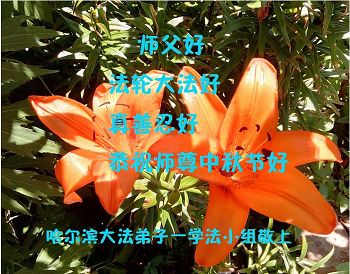 黑龙江省哈尔滨大法弟子一学法小组恭祝师尊中秋节好!