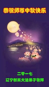 慈悲伟大的师尊您好 首先敬祝师尊中秋快乐! 每逢佳节倍思亲,在传统佳节到来之际,弟子们更加想念师尊。此时此刻弟子心中有千言万语,万语千言,也表达不尽师尊的浩荡洪恩,慈悲伟大师尊对弟子修炼提高、对众生能得救所付出所承受的一切,弟子铭记在心,用尽人间语也无法表述。弟子只有听师父话,精進!再精進!努力做好三件事,让师父少操一份心, 再次恭祝师尊中秋快乐! 大陆大法弟子 二零一七年中秋 辽宁新宾大法弟子恭祝师尊中秋快乐!