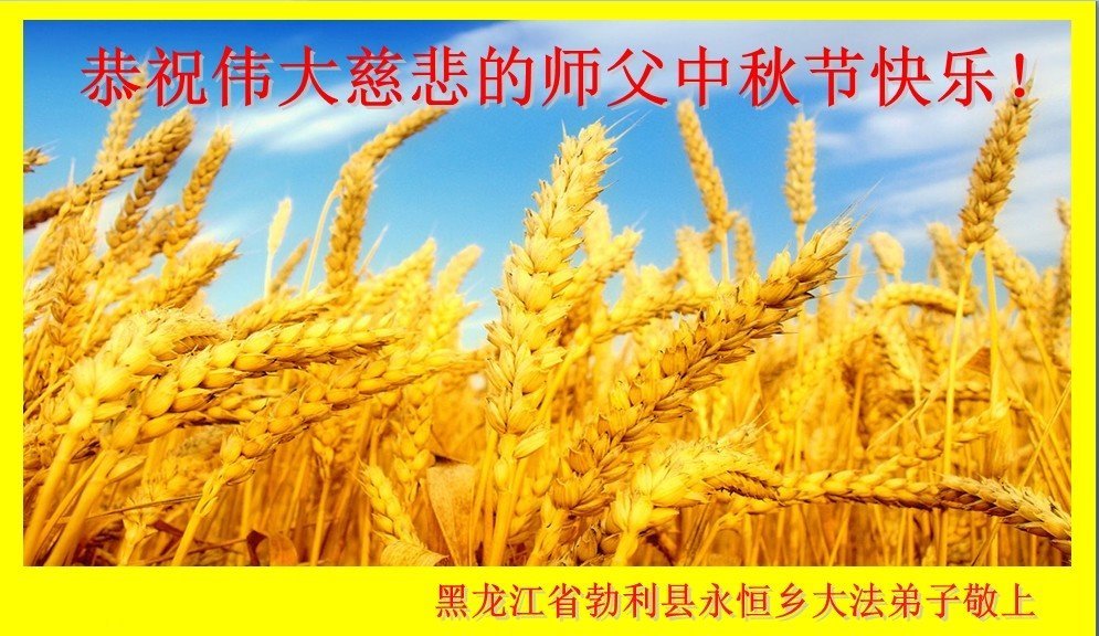 黑龙江省七台河市勃利县全体大法弟子问候师尊: 恭祝慈悲伟大的师尊中秋节快乐! 黑龙江省七台河市勃利县全体大法弟子敬上 黑龙江省七台河市勃利县永恒乡大法弟子问候师父:恭祝师父中秋节快乐!