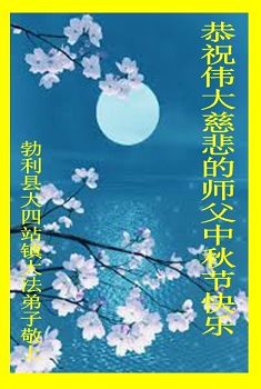黑龙江省勃利县大四站镇大法弟子问候师父: 恭祝伟大慈悲的师父中秋节快乐! 黑龙江省勃利县大四站镇大法弟子敬上 河北省沧州全体大法弟子恭祝师尊中秋节快乐!