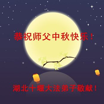 师父您好,师父辛苦了!在中秋节之日弟子更加想念您。弟子一定要更加精進,真修实修,做好三件事,修好自己,向内修,提高心性,信师信法,紧跟师尊坚 修到底。圆满随师还! 湖北十堰市大法弟子恭祝师父中秋快乐!