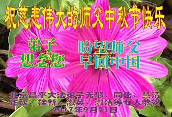 山东省兖矿一老年学法小组恭祝师尊中秋快乐! 四川成都市南边大法弟子恭祝师尊中秋节快乐!