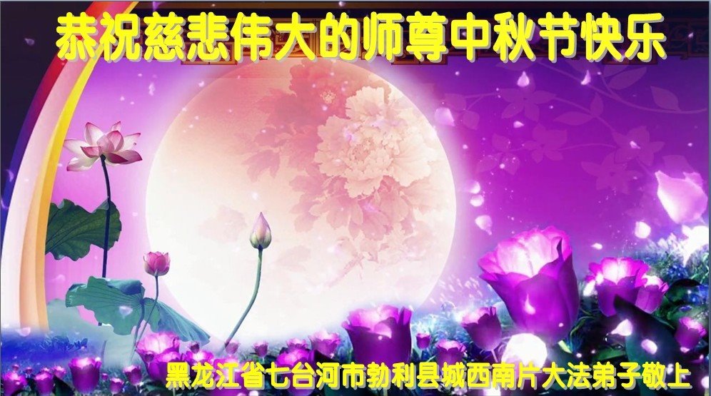 黑龙江省七台河市勃利县城西南片大法弟子问候师尊: 恭祝慈悲伟大的师尊中秋快乐! 黑龙江省七台河市勃利县城西南片大法弟子敬上 黑龙江省七台河市勃利县城西北片大法弟子恭祝慈悲伟大的师尊中秋快乐!