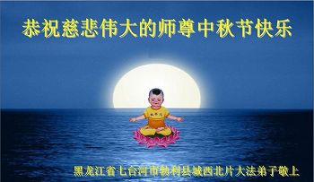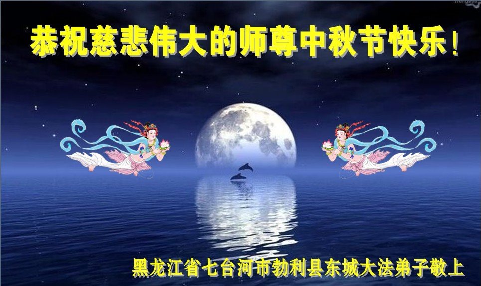 黑龙江省七台河市勃利县中心片大法弟子问候师尊: 恭祝慈悲伟大的师尊中秋快乐! 黑龙江省七台河市勃利县中心片大法弟子敬上 黑龙江省七台河市勃利县全体大法弟子恭祝慈悲伟大的师尊中秋快乐!