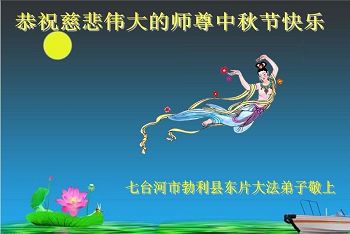 黑龙江省七台河市勃利县大法弟子问候师父: 恭祝慈悲伟大的师尊中秋快乐! 黑龙江省七台河市勃利县大法弟子敬上 辽宁抚顺一家三弟子恭祝慈悲伟大的师尊中秋快乐!