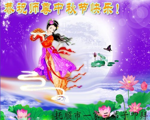 恭祝师尊中秋快乐! 辽宁抚顺一家三弟子叩拜 山东烟台招远一家三人大法弟子恭祝慈悲伟大的师尊中秋快乐!