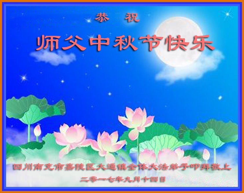 【明慧网二零一七年十月二日】 四川南充市嘉陵区大通镇全体大法弟子恭祝师父中秋节快乐!