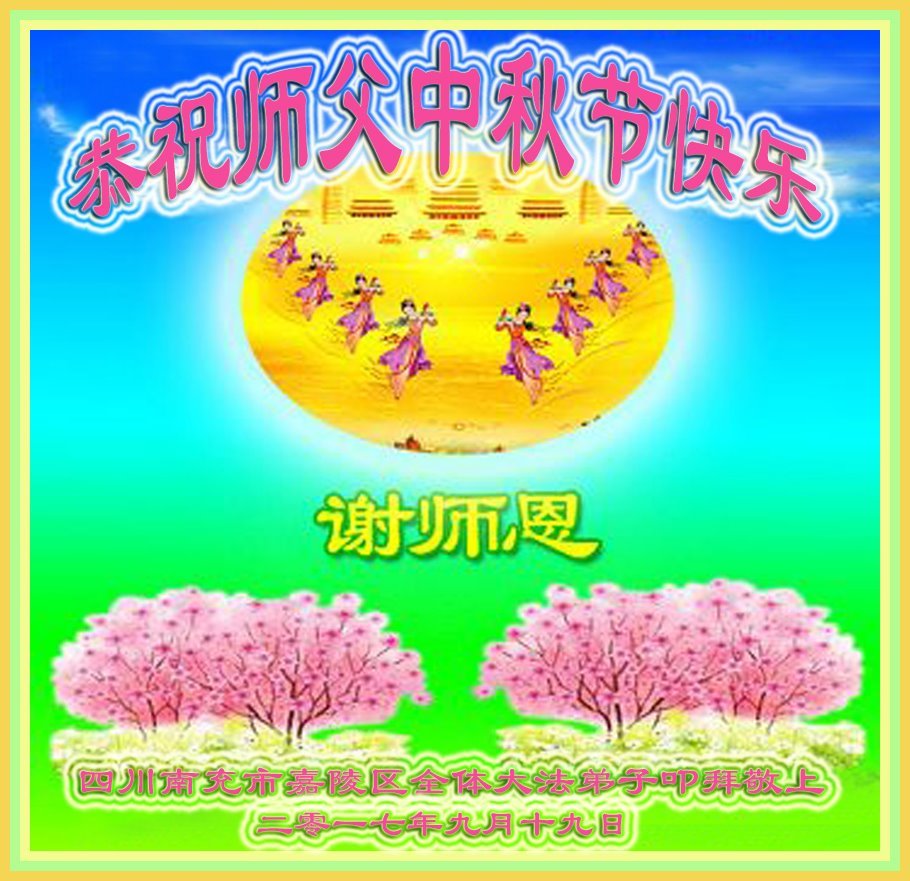 南充市全体大法弟子叩拜敬上 二零一七年九月十九日 四川南充市一大法弟子恭祝师尊中秋快乐!