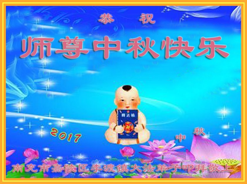 南充市嘉陵区李渡镇全体大法弟子叩拜敬上 二零一七年九月 四川南充市全体大法弟子恭祝慈悲伟大的师尊中秋节快乐!