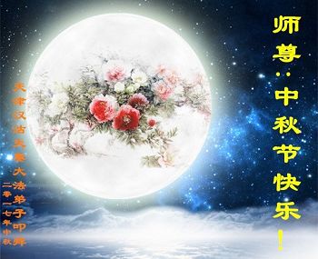 中秋复中秋,一年又一年,在这合家团圆的节日之际,弟子给师尊叩首,恭祝师尊中秋快乐!师尊您辛苦了!弟子想念您!师徒相聚的日子不会远了!珍惜师尊用巨大承受延续来的时间,做好三件事,感恩师尊慈悲保护,风风雨雨十几载,这朵小花依然灿烂,我们会更加精心呵护,直到圆满随师还!