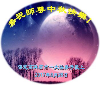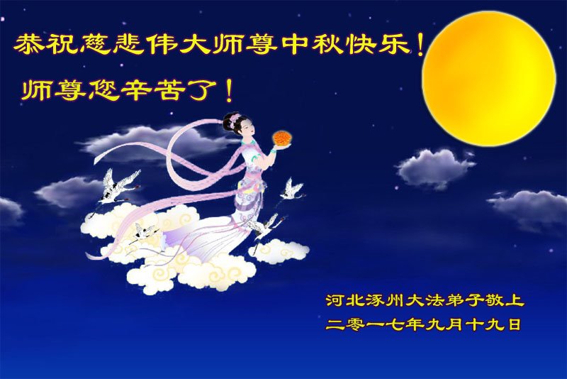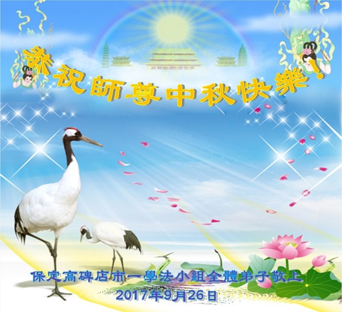 【明慧网二零一七年十月二日】 河北省保定市高碑店市一大法弟子恭祝师尊中秋快乐!