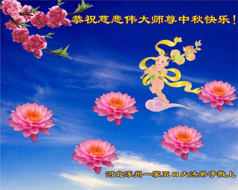 恭祝慈悲伟大的师尊中秋快乐!弟子们感恩师尊慈悲救度,师尊您辛苦了! 河北省涿州市大法弟子敬上 河北省保定市容城县大法弟子祝慈悲伟大的师尊中秋节快乐!