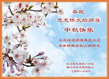 我们一定精進实修,做好讲真相、救度世人,遇事向内找,整体配合好。 四川德阳一大法弟子祝师父中秋快乐!