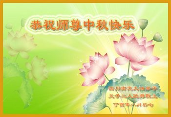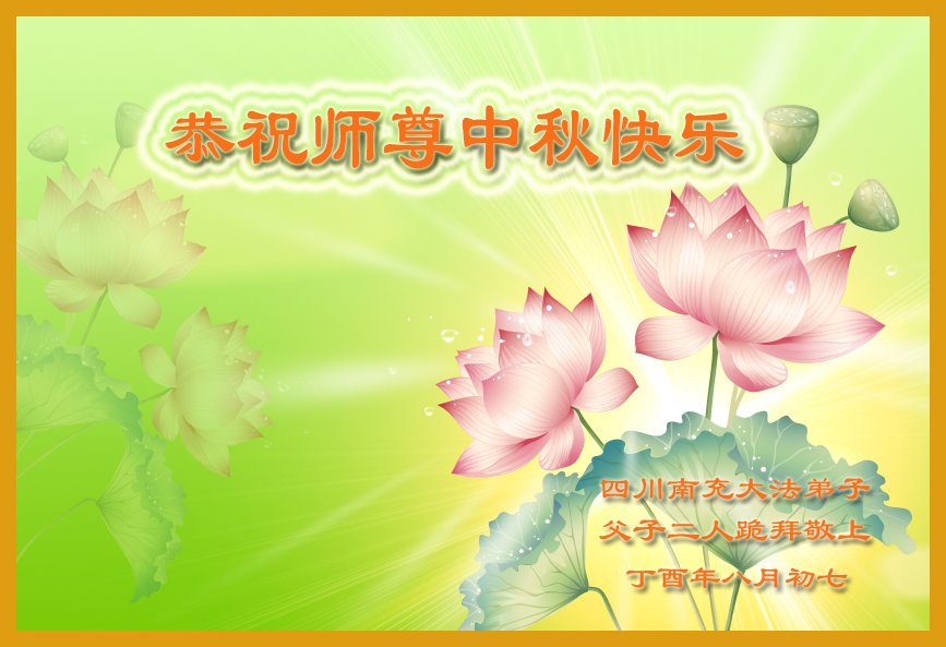 四川南充大法弟子父子二人恭祝师尊中秋快乐!