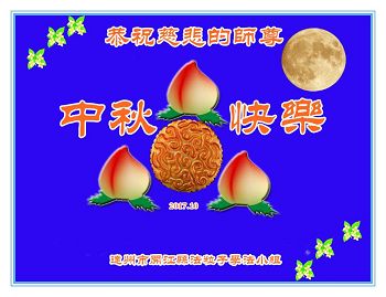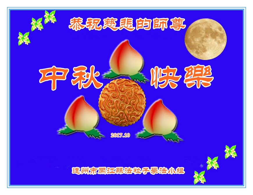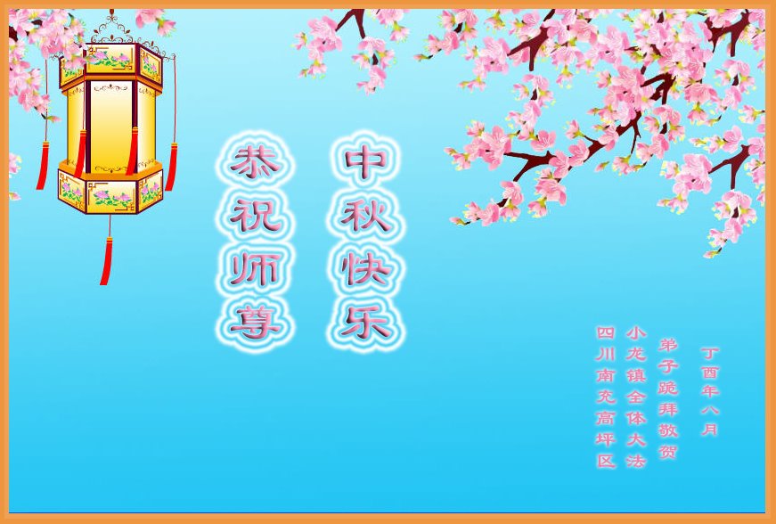 师尊:中秋快乐! 四川南充一对夫妻大法弟子跪拜敬上 二零一七年九月二十五日 四川南充顺庆一学法小组全体大法弟子恭祝师尊中秋快乐!