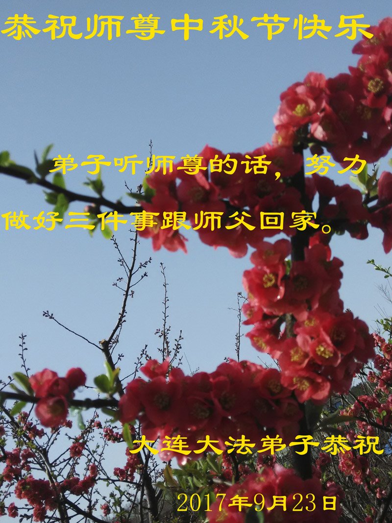 真善忍洪传 大法正人间 坚定跟师走 圆满随师还 大连大法弟子敬上 二零一七年九月十五日