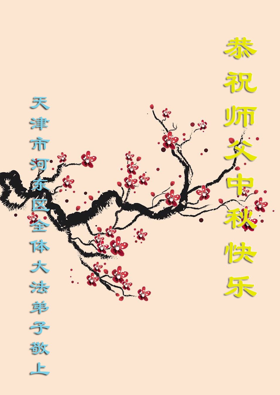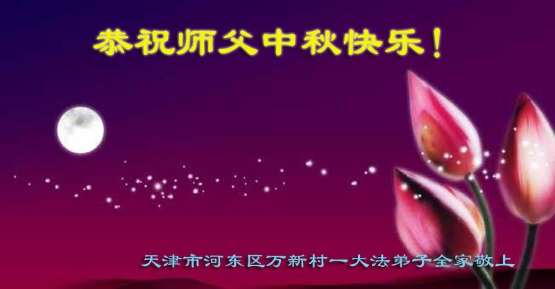 天津市河东区全体大法弟子恭祝师父中秋快乐! 天津市河东区万新村一大法弟子全家恭祝师父中秋快乐!