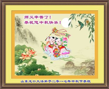 二十年的修炼,深深的感受到师尊的操劳!感受到了大法的美好!感受到了师尊的伟大!感受到了师尊的慈悲保护!谢谢师尊!我们全家跪拜 恭祝师尊中秋节快乐! 烟台大法弟子 山东烟台招远两位大法弟子恭祝慈悲伟大的师尊中秋节快乐!